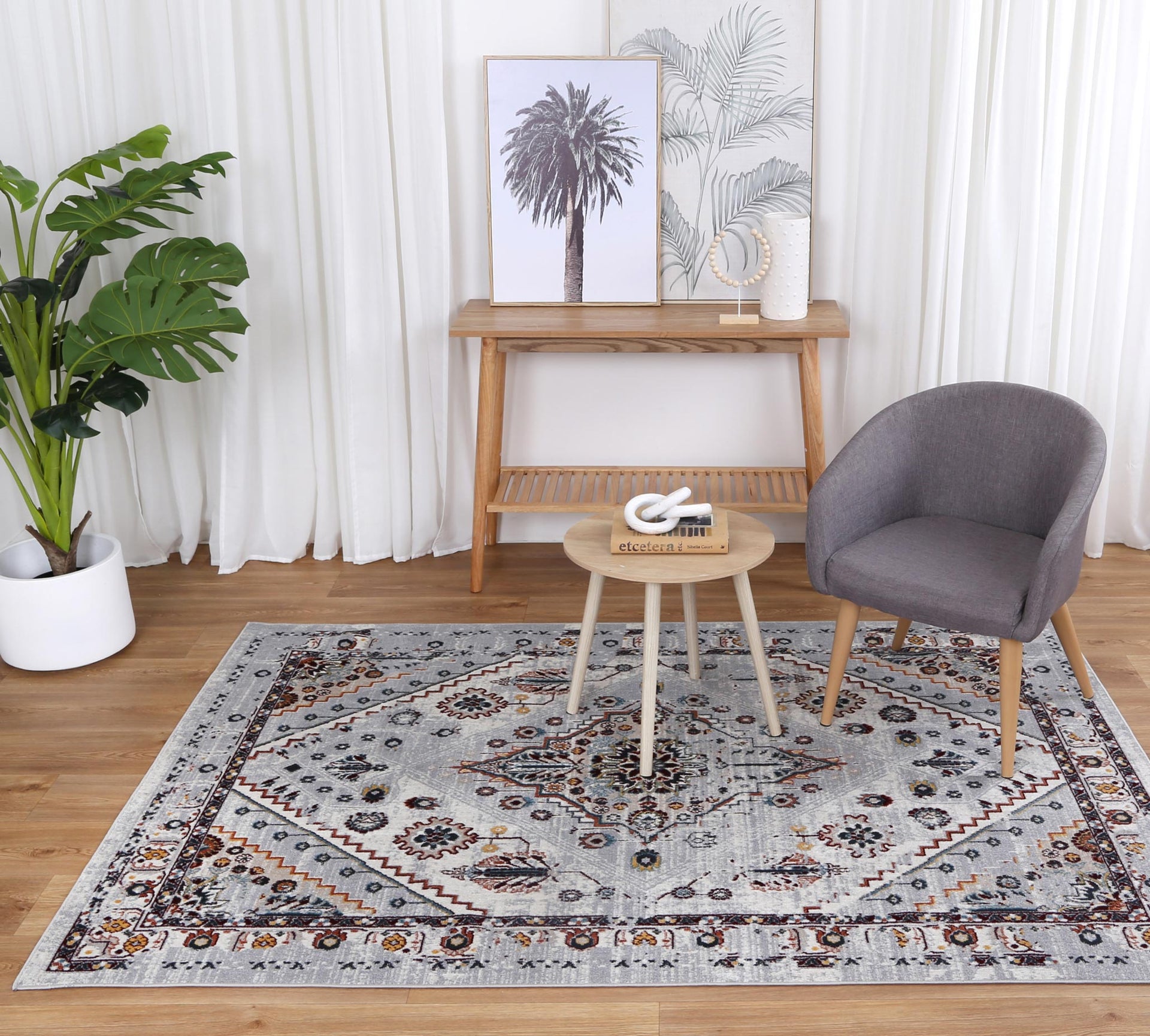 Oporto Santos Grey & Rust Traditional Soft Rug