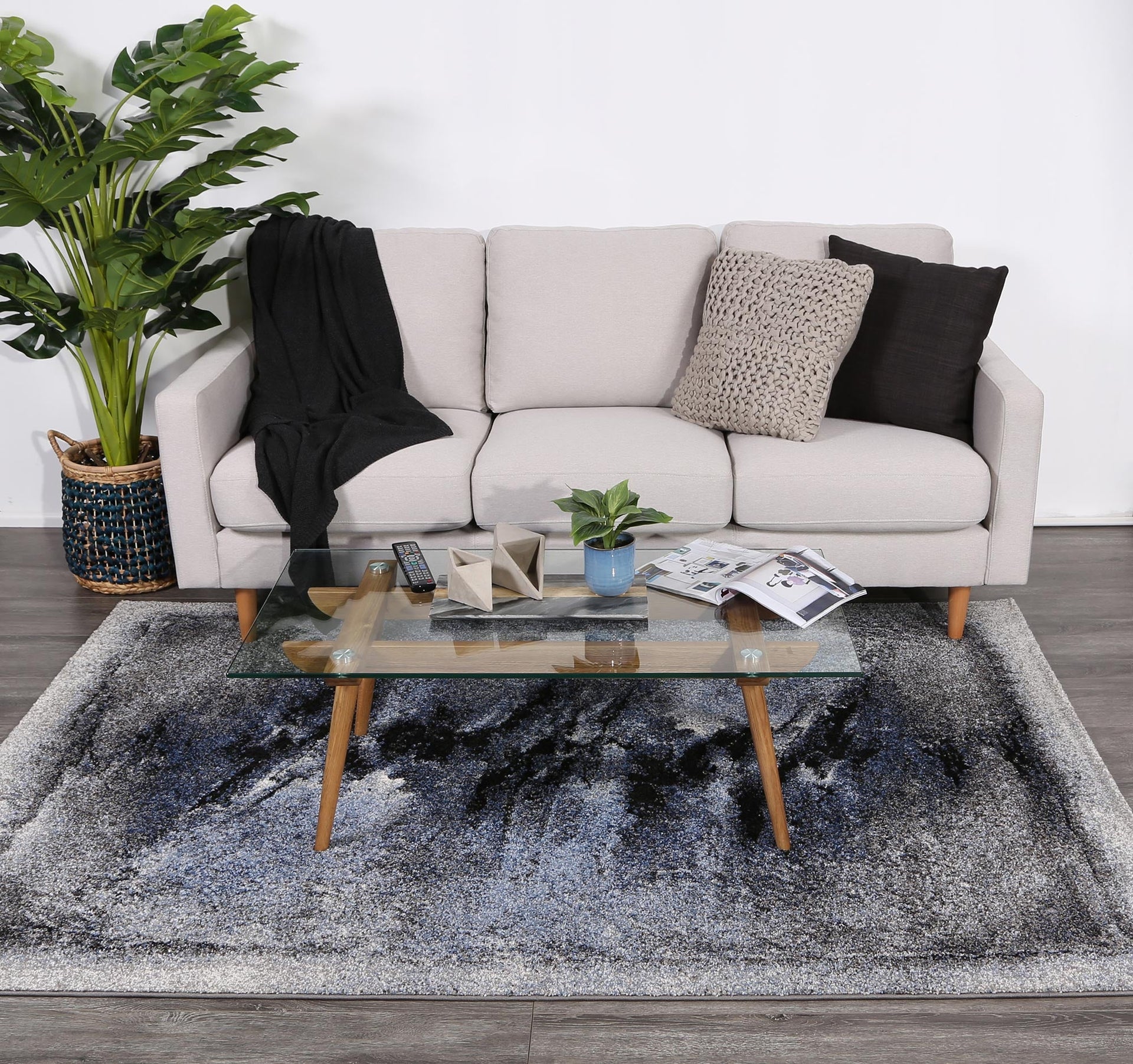 Chelsea Blue and Grey Abstract Bordered Modern Rug